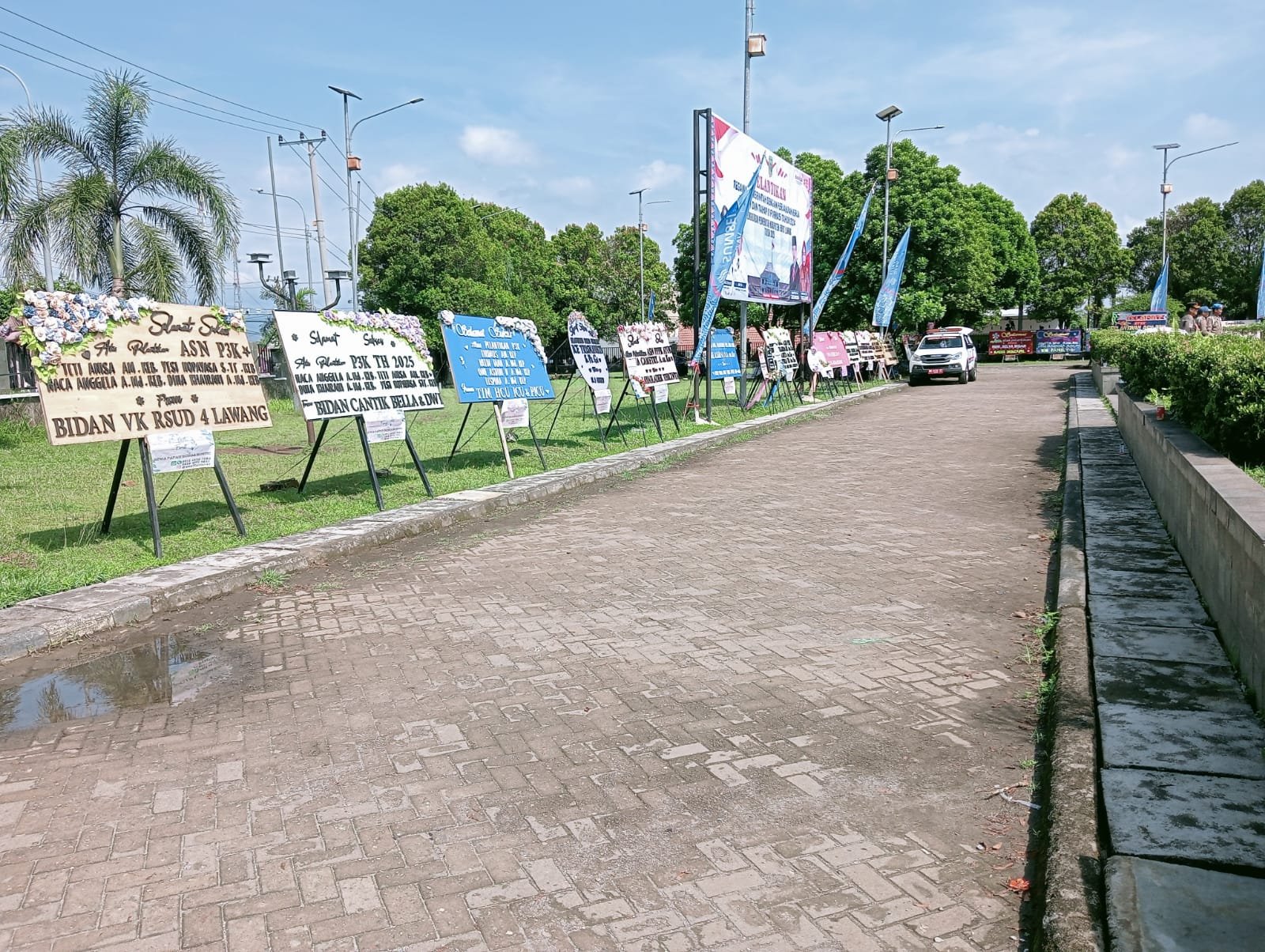 EMPAT LAWANG, (serumpunnews) – Suasana di halaman Kantor Bupati Empat Lawang tampak semarak dengan deretan papan bunga ucapan selamat atas pelantikan Pegawai Pemerintah dengan Perjanjian Kerja (PPPK). Sejak sehari sebelum acara berlangsung, papan-papan bunga mulai menghiasi area lapangan kantor. Selasa (23/09/2025)